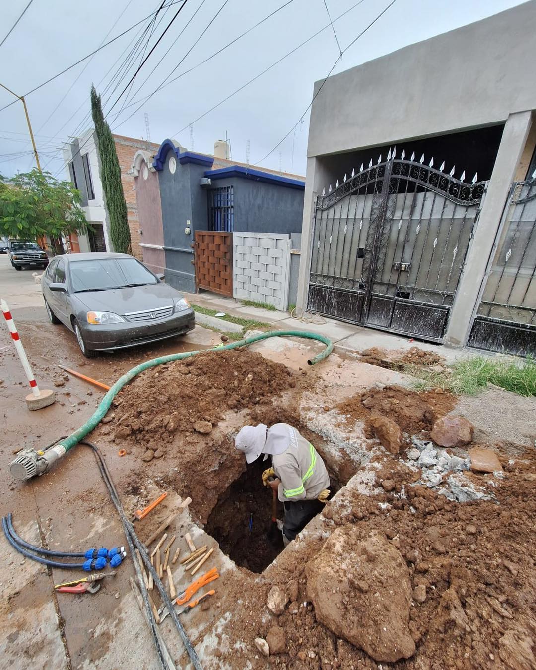 En el fraccionamiento Lomas del Ajedrez, sobre la avenida Del Rey, se realizaron trabajos tanto para la detección y reparación de una fuga en la vialidad, como para la atención de una toma domiciliaria que presentaba deterioros y posibles filtraciones. Estas acciones permiten garantizar un suministro más eficiente y seguro para las y los usuarios del sector.