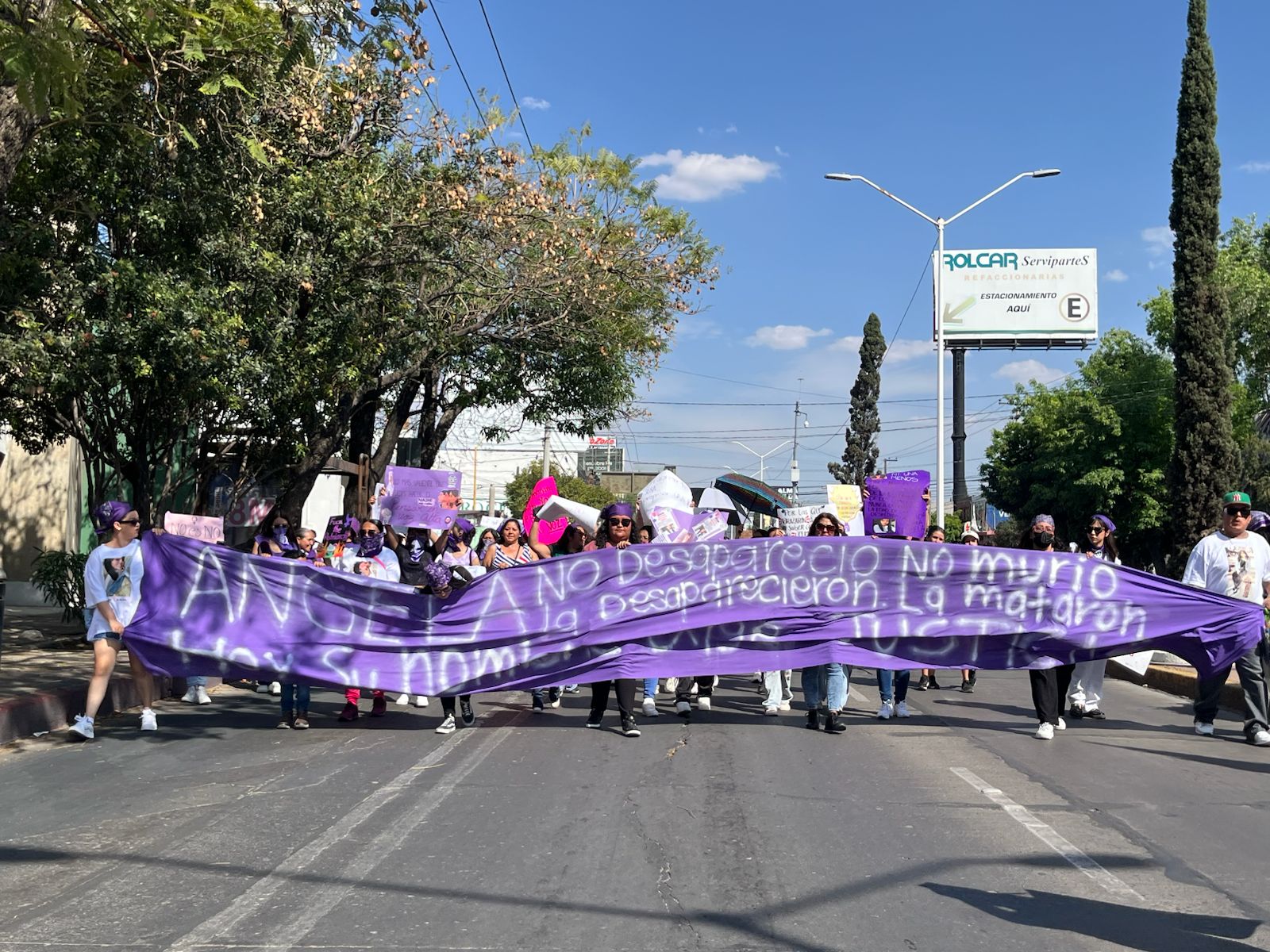 Un contingente de cerca de 5 mil mujeres, de todas las edades, participó en la marcha conmemorativa por el Día de la Mujer en Aguascalientes. Al frente se colocaron familiares de víctimas de feminicidio, especialmente la familia de Ángela Gabriela, quien fue asesinada en octubre del año pasado y encontrada en Querétaro, después de que su familia la reportara como desaparecida.